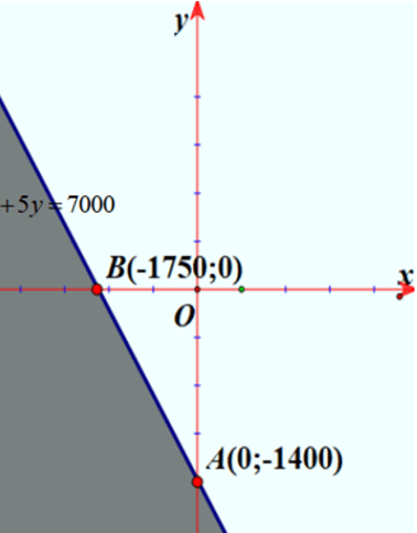 Theo bài ra ta có: $8000 x+10000 y \leq 14.000 .000 \Leftrightarrow 4 x+5 y \leq 7000$.