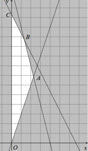 Như vậy miền nghiệm là tam giác $A B C$ (kể cả biên).