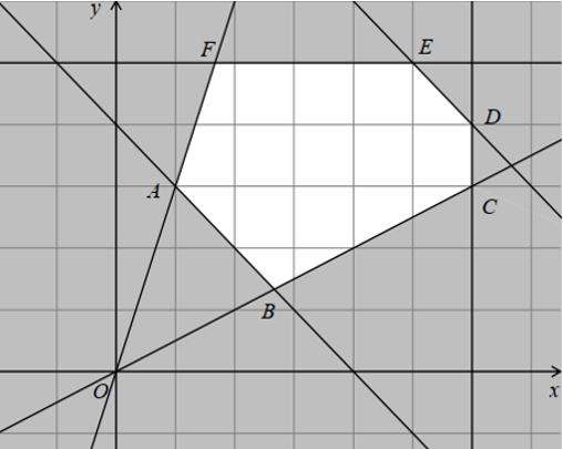 Chúng ta tìm được miền nghiệm của hệ bất phương trình đã cho là phần không tô đậm trong hình vẽ bên (kể cả biên).