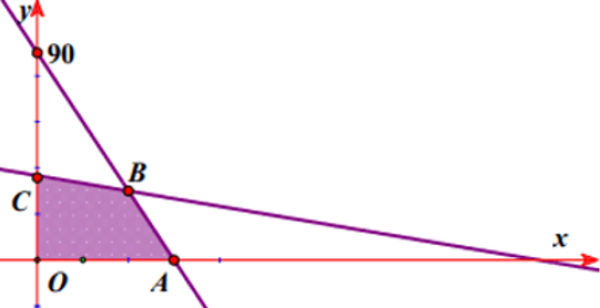 Trên mặt phẳng tọa độ $Oxy$ vẽ các đường thẳng ${{d}_{1}}:x+2y=100;\quad {{d}_{2}}:3x+1,5y=120$
