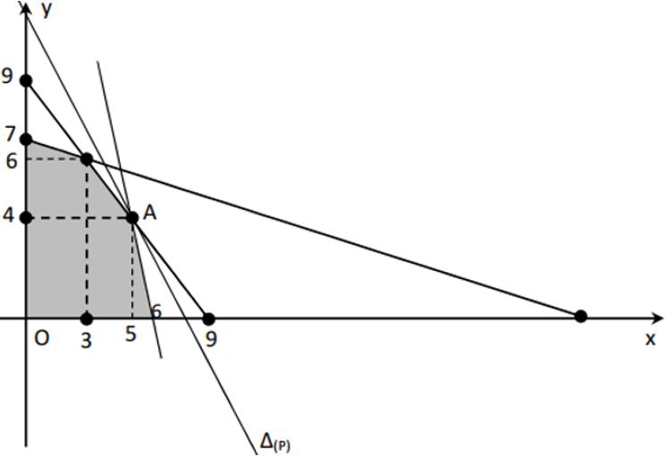 Bài toán trở thành tìm giá trị lớn nhất của hàm số $f(x ; y)$ trên miền nghiệm của hệ (*).