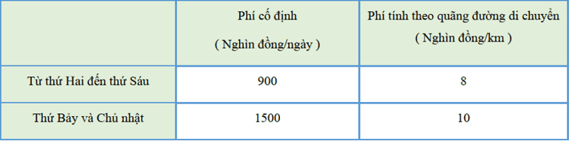 Câu 10. Ông An muốn thuê một chiếc xe ô-tô (có lái xe) trong một tuần. Giá thuê xe được cho như bảng sau: