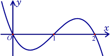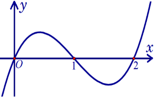 Câu 1. Cho hàm số $f(x)\,\,=\,\,{{x}^{3}}-3{{x}^{2}}+2x$ có đồ thị như hình bên.
