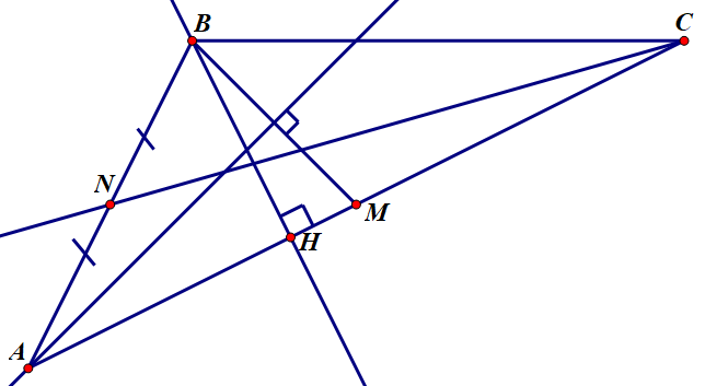 Dễ thấy $N\in {{d}_{3}}$, $AC\bot {{d}_{2}}$, $BM\bot {{d}_{1}}$, ta có $\left\{ \begin{align}& 10\left( \frac{a}{2}-b+3 \right)-3\left( \frac{b}{2}+2 \right)-6=0 \\ & -2\left( -a+3c+3 \right)+\left( 10c+4 \right)=0 \\ & \frac{a+4b+3c-9}{2}+0=0 \\ \end{align} \right.$ giải ra $\left\{ \begin{align}& a=1 \\ & b=2 \\ & c=0 \\ \end{align} \right.$.