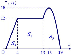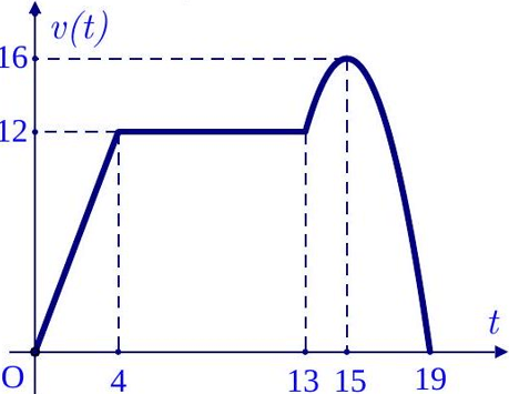 Câu 3. Một chất điểm chuyển động thẳng trong 19 giây với vận tốc $v\left( t \right)$ (đơn vị: $\text{m}/\text{s}$) là hàm số phụ thuộc thời gian $t$ (đơn vị: giây) có đồ thị như hình vẽ.