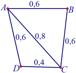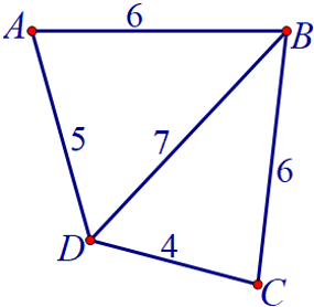 Câu 2. Một nhân viên giao hàng cần đi qua tất cả các tuyến đường chính nối 4 địa điểm $A\,,\,\,B\,,\,\,C\,,\,\,D$; sơ đồ đường và chiều dài như hình vẽ (đơn vị: kilômét).