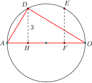 Xét điểm $D$ như hình vẽ $\left\{ \begin{align}& HA.HO=H{{D}^{2}}=9 \\ & HA+HO=10 \\ \end{align} \right.$ $\Rightarrow \left\{ \begin{align} & HA=1 \\ & HO=9 \\ \end{align} \right..$