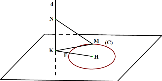 Ta có $\forall M\in \left(C\right),N\in d:\,\,MN\ge MK\ge KE.$ Vậy $EK$ là giá trị nhỏ nhất của $MN.$