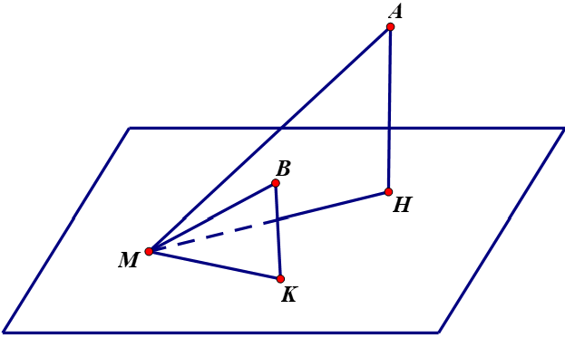 Đẳng thức xảy ra khi và chỉ khi hai vectơ $\overrightarrow{MH},\ \overrightarrow{MK}$ cùng hướng.