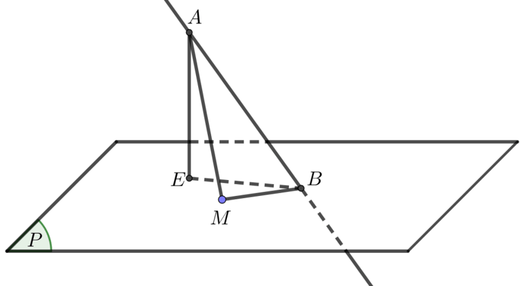 + Gọi $E$ là hình chiếu của $A$ lên $\left(P\right)$. Ta có $AM\ge AE$.