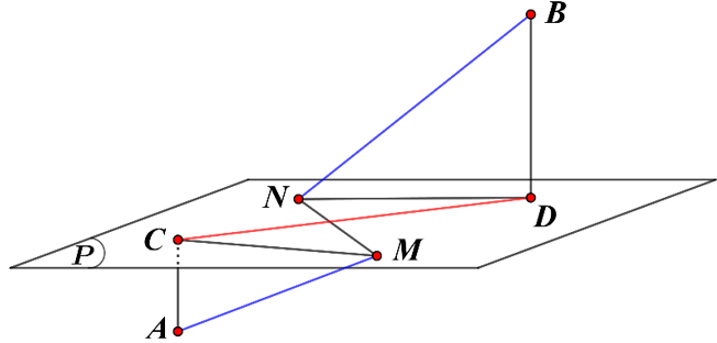 Ta có $AM+BN=\sqrt{A{{C}^{2}}+C{{M}^{2}}}+\sqrt{B{{D}^{2}}+D{{N}^{2}}}$ $\ge\sqrt{{{\left(AC+BD\right)}^{2}}+{{\left(CM+DN\right)}^{2}}}$