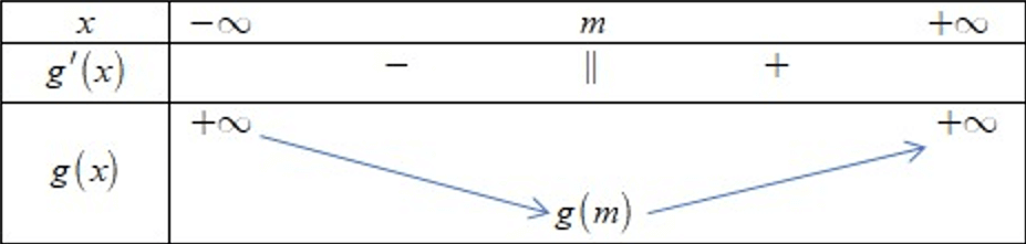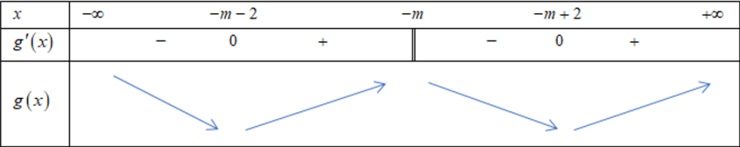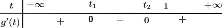 $+)$ Nếu $0<m\le\dfrac{-1+\sqrt{5}}{2}$ (3): Dấu ${g}'(x)$ trên trục số như sau: