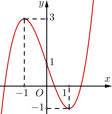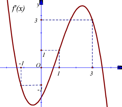 Dựa vào đồ thị hàm số ta có được ${f}'\left(t\right)=t-1\Leftrightarrow \left[\begin{align}&t=-1\\ &t=1\\ &t=3\end{align}\right.$