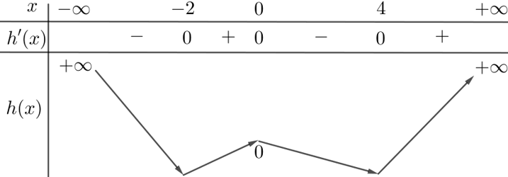 Dễ thấy ${h}'\left(2\right)=2{f}'\left(0\right)>0$