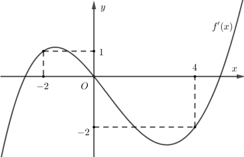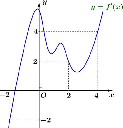 Câu 35. Cho hàm số $y=f\left(x\right)$ liên tục trên $\mathbb{R}$, biết $f\left(2\right)=4.$ Biết hàm số $y={f}'\left(x\right)$ có đồ thị như hình vẽ sau