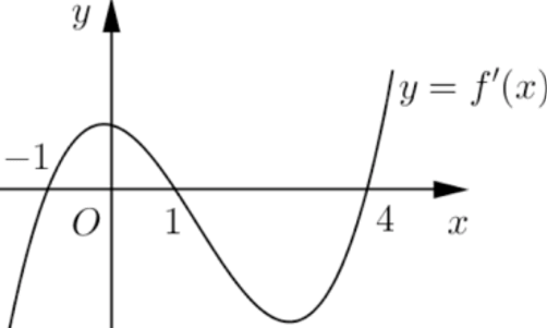 ${f}'\left(x\right)=0\Leftrightarrow \left[\begin{align}&x=-1\\ &x=0\\ &x=2\end{align}\right.$