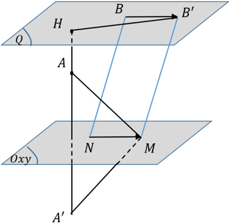 Ta có $HA'$ là hình chiếu của $OA$ trên mặt phẳng $\left( P \right)$.