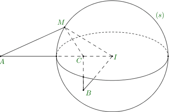 Mà $\,M$ là điểm thay đổi trên $(S)$ nên $\,MI$ đạt giá trị nhỏ nhất khi $M\equiv B$