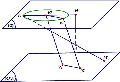 Dấu ”=” xảy ra khi $\left\{ \begin{align} & K\equiv E \\ & M\in AK,\left| AM-MK \right|=AK \\ \end{align} \right.$ $\Leftrightarrow M=AE\cap \left( Oxy \right)={{M}_{0}}$.