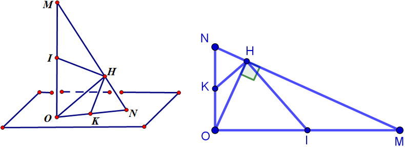 $\Rightarrow \widehat{IHK}=\widehat{OHI}+\widehat{KHO}=\widehat{IOH}+\widehat{KOH}=\widehat{IOK}=\widehat{MON}={{90}^{0}}$ $\Rightarrow HK\bot IH$