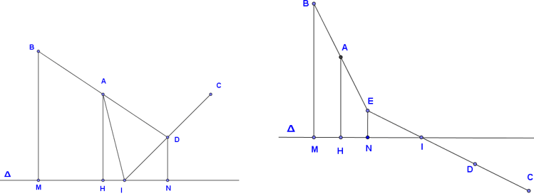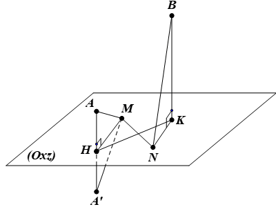 Do đó $AM+BN={A}'M+BN=\sqrt{H{{{{A}'}}^{2}}+H{{M}^{2}}}+\sqrt{B{{K}^{2}}+K{{N}^{2}}}$